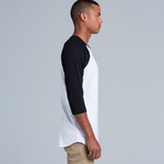 • Crew neck, ¾ length raglan sleeves, curved tails