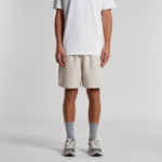 • Sweat shorts, self-fabric elasticated waistband, tonal internal drawcord, 2 side pockets, single pocket at back, double needle hems
